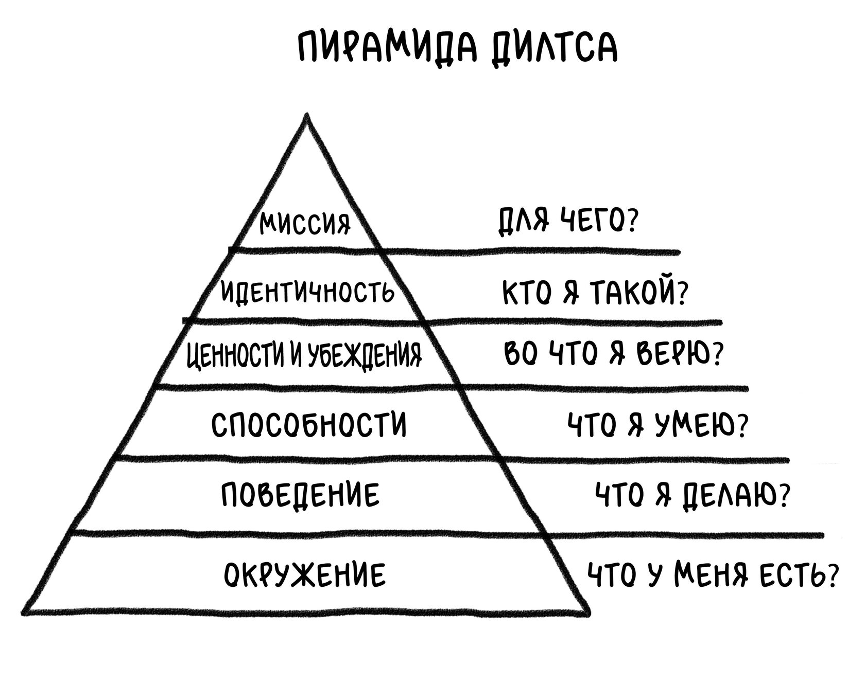 И в том и в другом случае для счастья не хватает внутренней опоры. Разберемся, как пирамида Дилтса помогает это исправить и убить двух зайцем разом: воплотить мечты в реальность и придать смысл повседневным действиям.