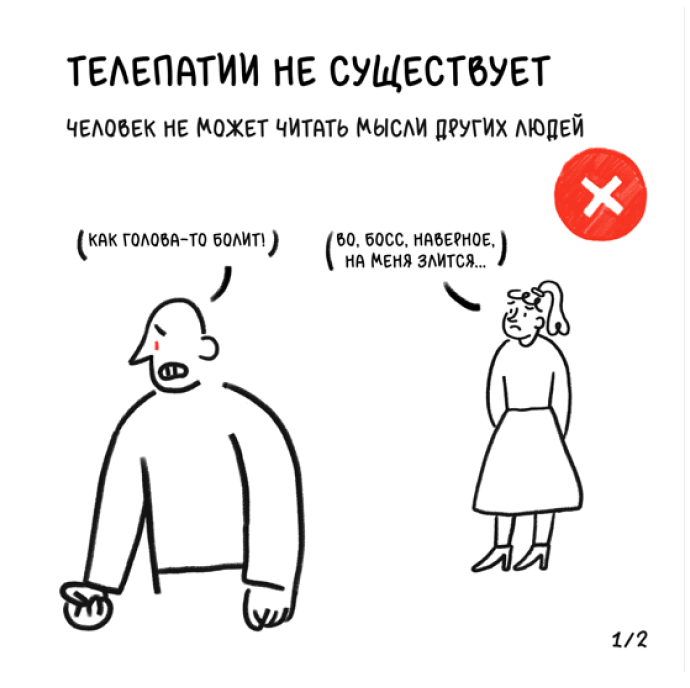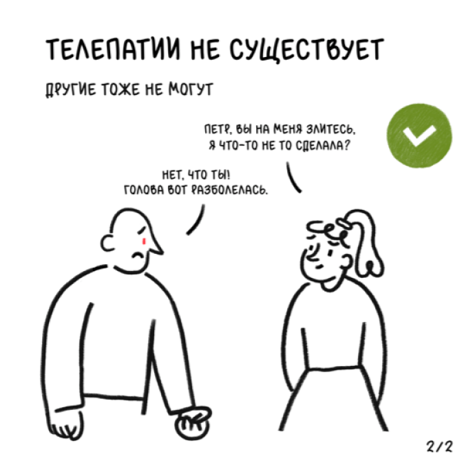 Когда человек додумывает слова, поступки и желания за других людей, случаются неприятные ситуации. Вопросы и обсуждения помогут их избежать.